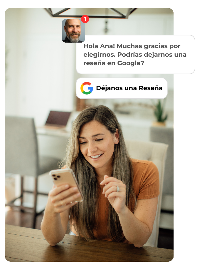 Duplique sus revisiones mensuales en menos de 60 días con invitaciones a revisiones por mensaje de texto, automatizaciones y respuestas impulsadas por IA, todo en una plataforma fácil de usar.
